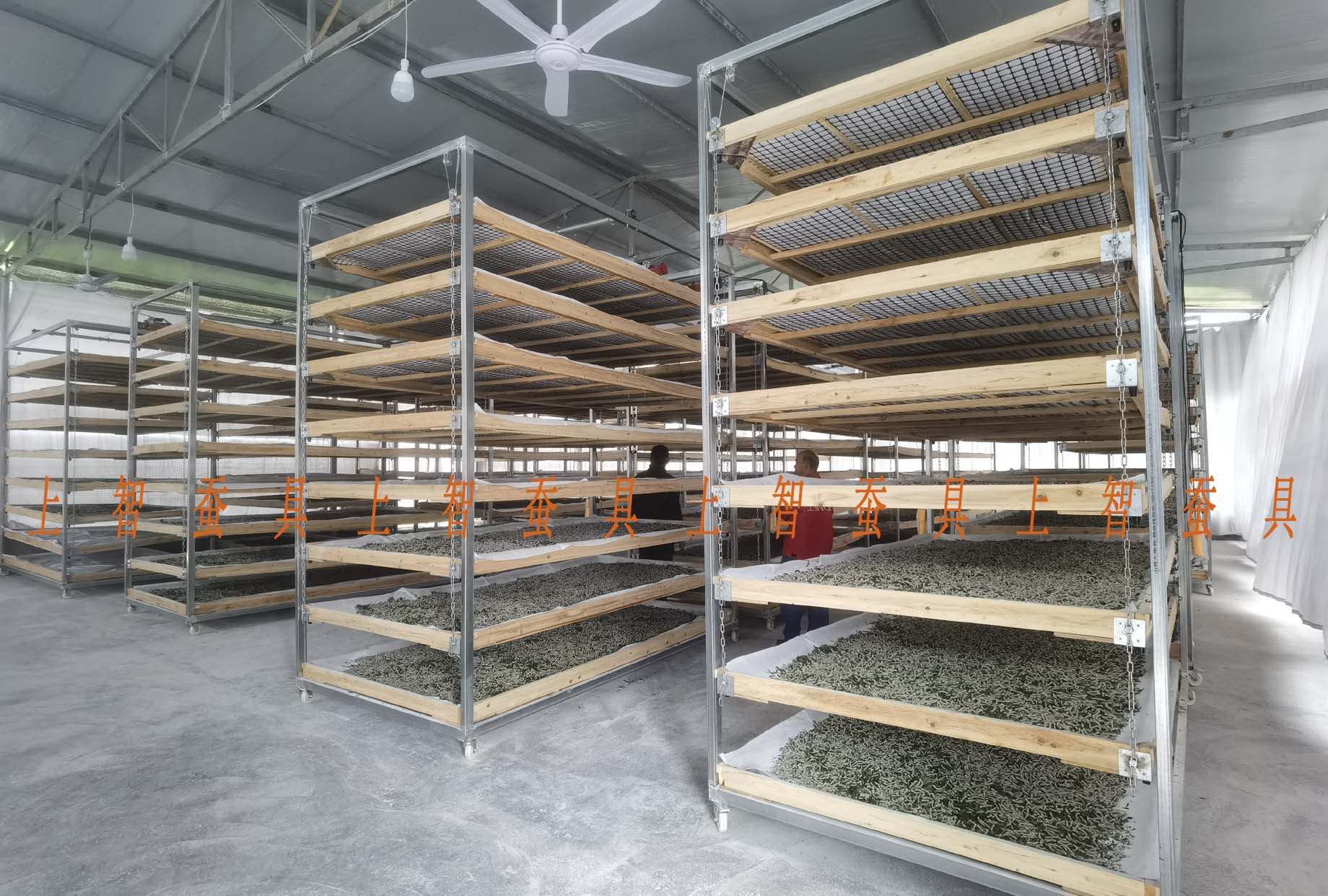 上智蚕具:电动升降蚕台配置6-8层蚕框,底部配有万向转轮,能灵活移动,空间利用率高,使蚕房单位面积养蚕量最大化。蚕台采用正反转电机完成蚕框的提升和下降,可灵活调整每层蚕框的间距,在适合的高度完成养蚕给桑和消毒等工作,具有效率高,省时省力的特点!!!